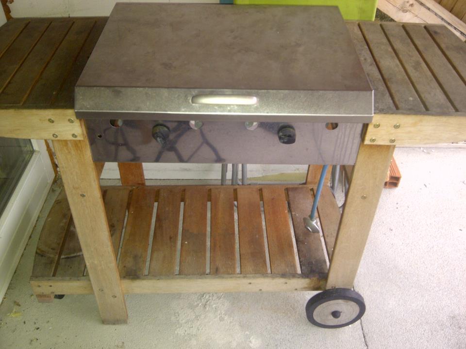 - Klasični inox kombinirani žar 2/3 inox rešetka 90 x 60cm na drva in oglje obdan s šamotom, 1/3 gus plinska plošča za pečenje ali pogrevanje dimenzije litoželezne gus plošče - 30 x 60, vse skupaj pa je samostoječ voziček na kolesih – dolžine 140cm in širine 70cm